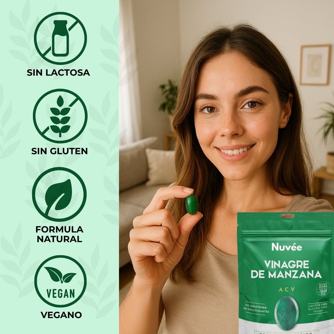 Amelia M. Marzo 2025Comprador VerificadoNUEVO BÁSICO EN MI RUTINA 🔥Tengo la piel clarita y cada carbo se nota. Con Nuvee la cara amanece desinflamada y los jeans cierran fácil. Compré 2+2 y me siento inversionista de mí misma 😎Gomitas de Vinagre de Manzana